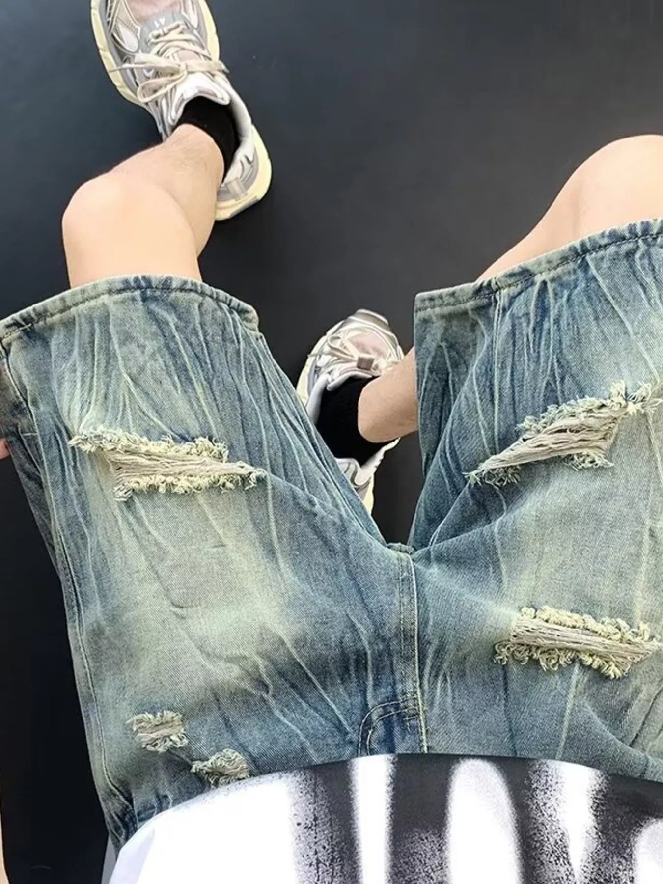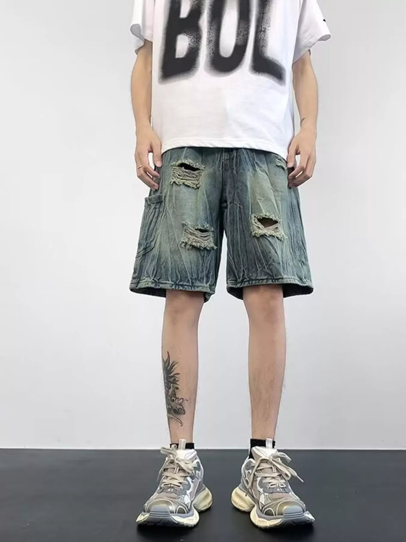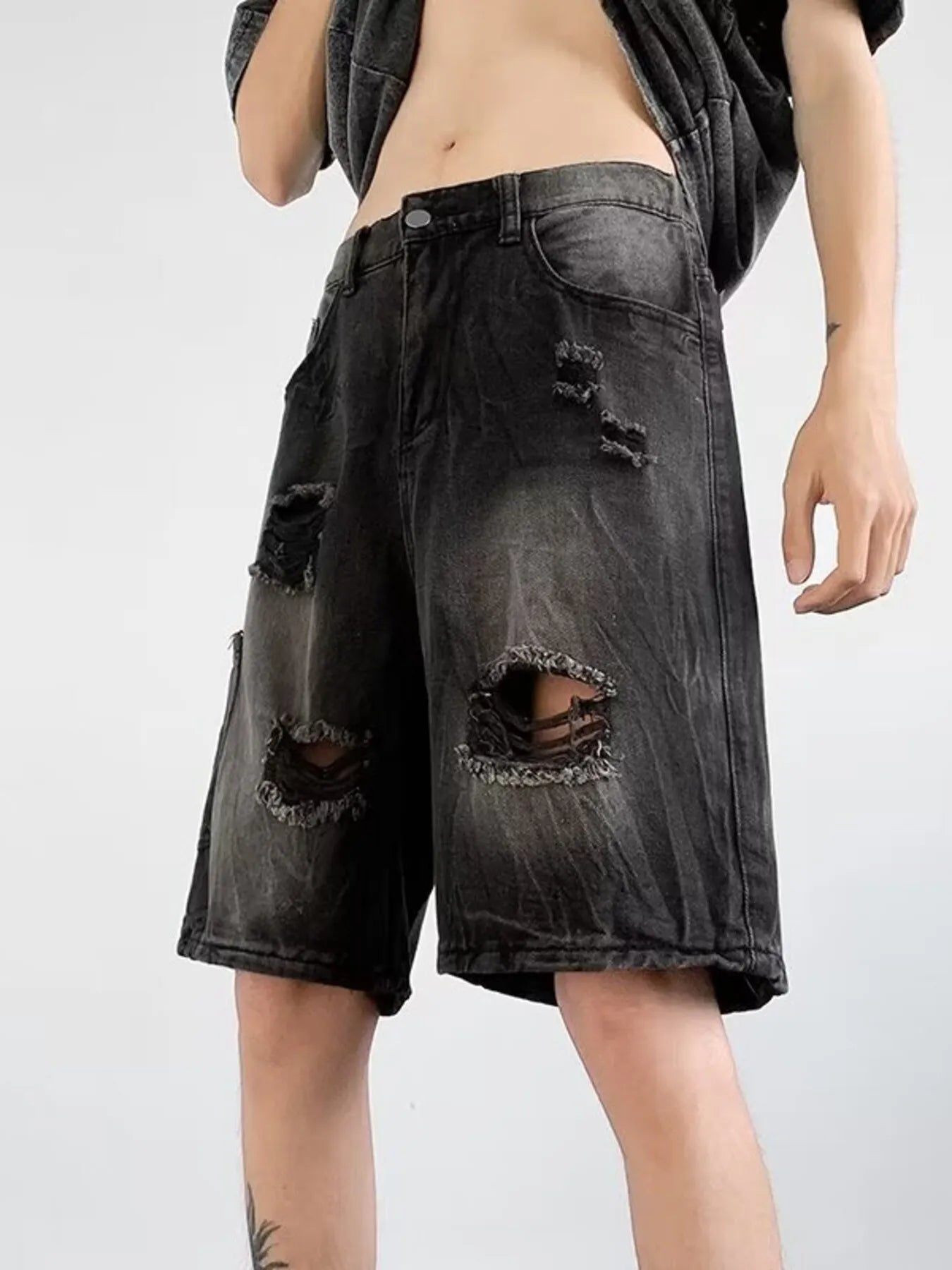 Men's Plus Size Distressed Wide Leg Denim Shorts