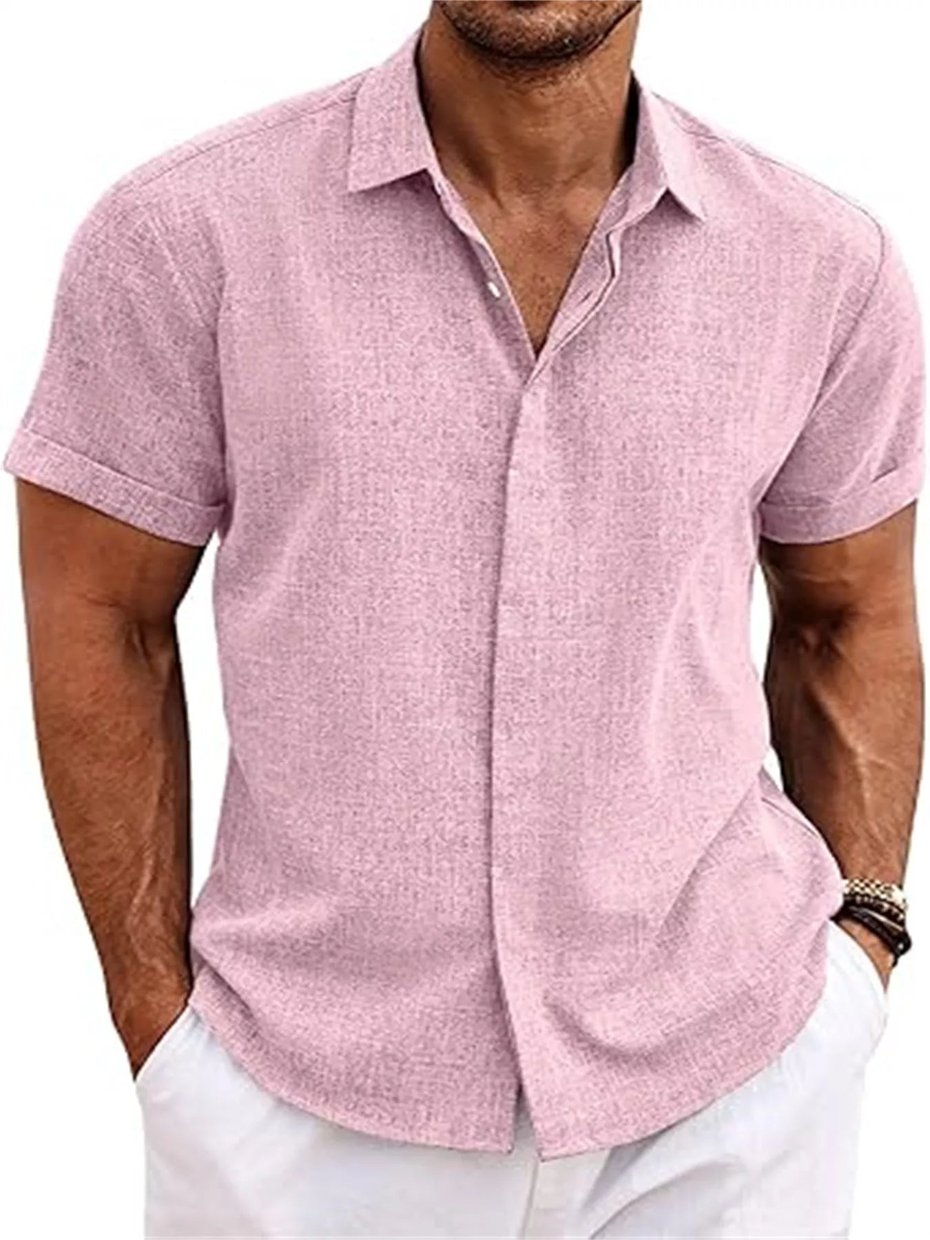Men's Full Size Casual Short Sleeve Button-Down Shirt Plus Size