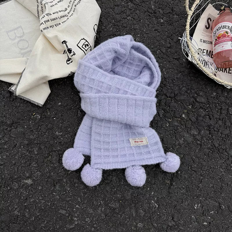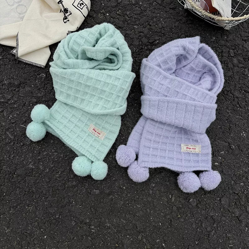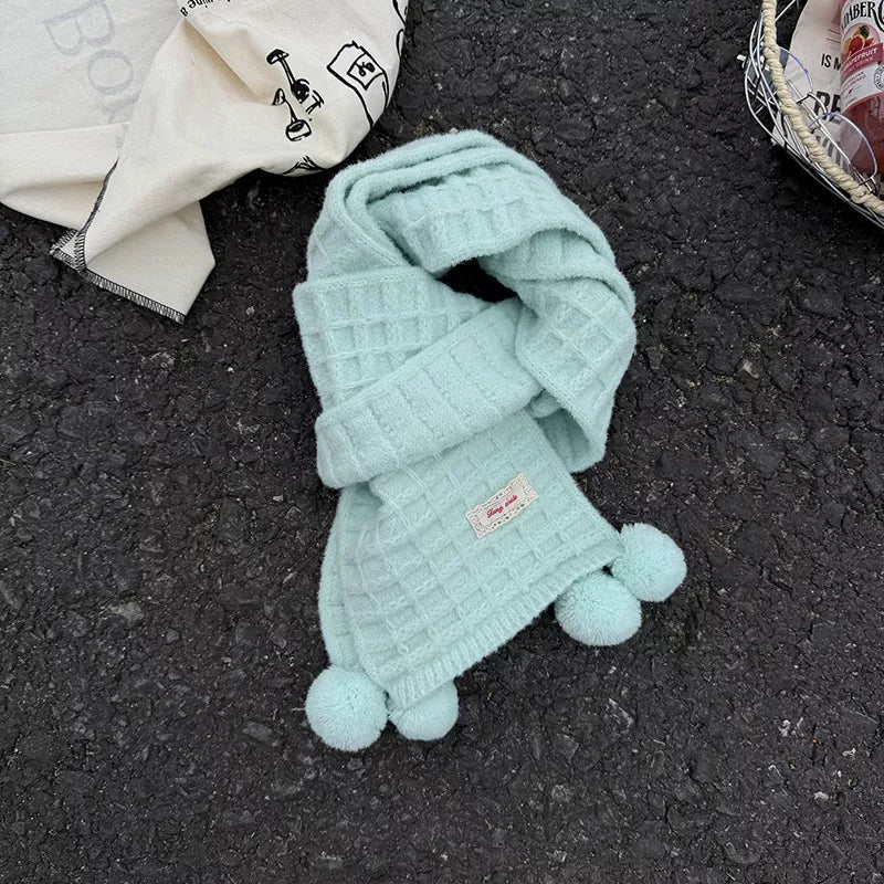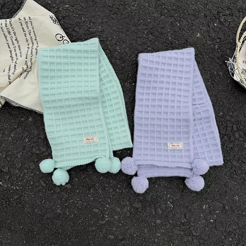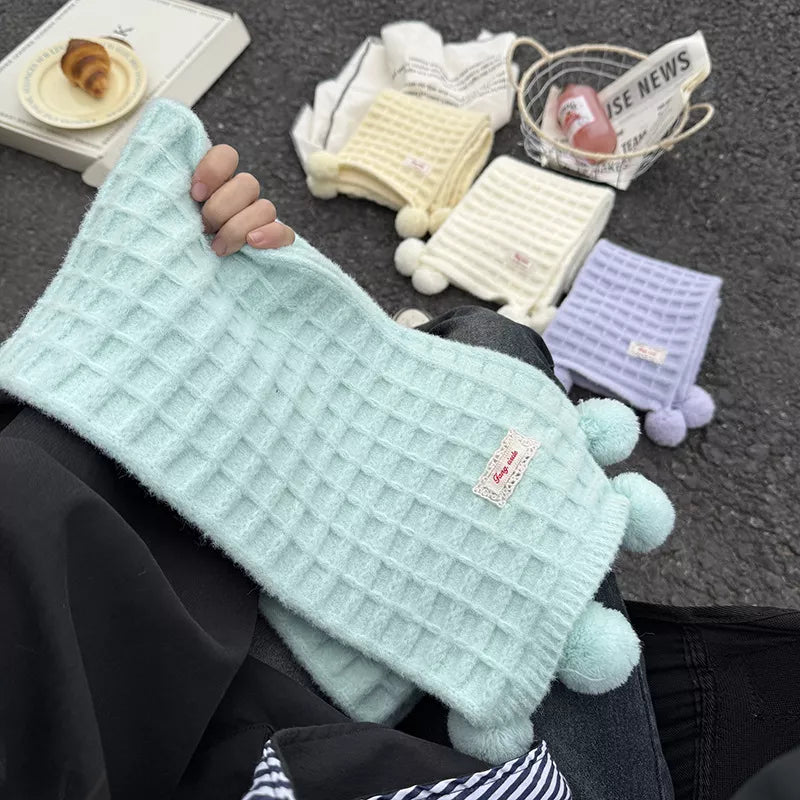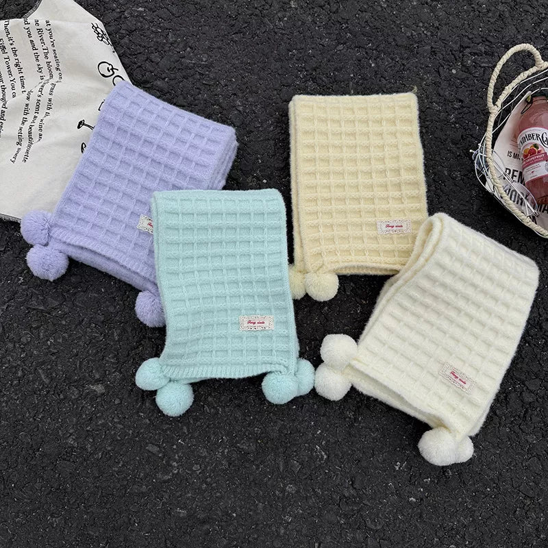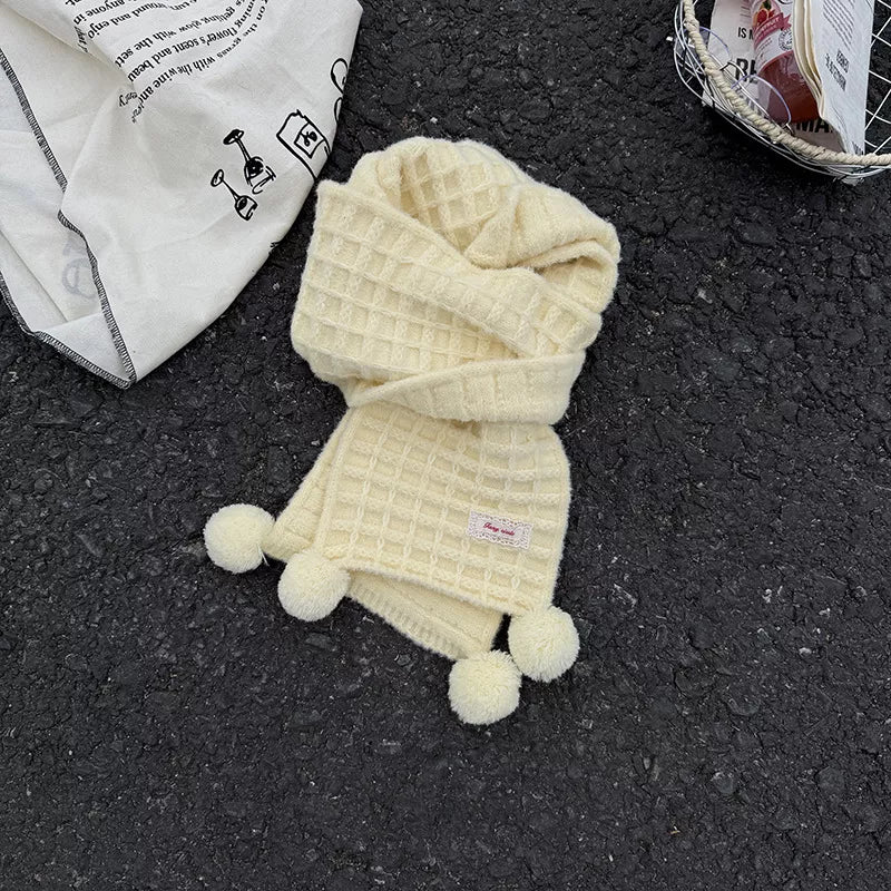 Waffle Knit Pom-Pom Scarf